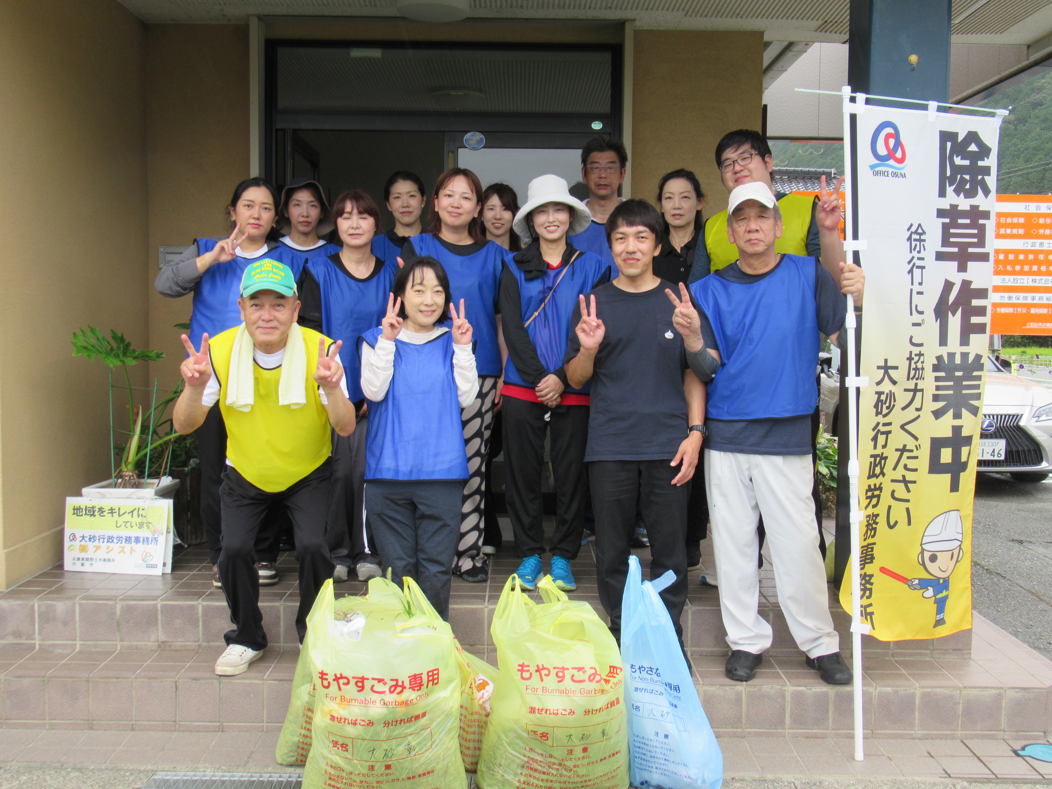 今回は、大砂事務所付近の県道中心に、草刈とゴミ拾いを行いました。