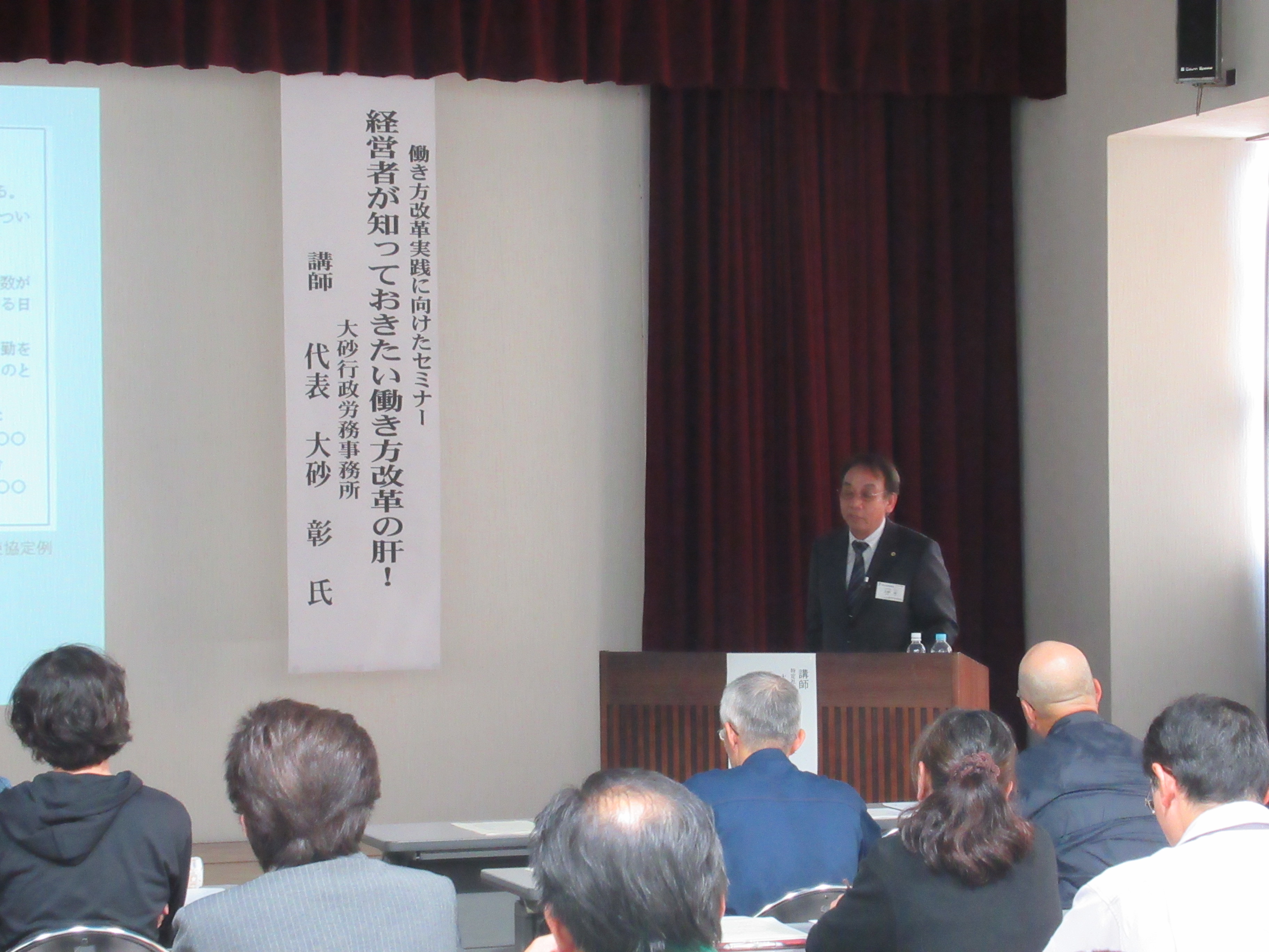 2019年11月1日に丹波市商工会様との共催で「経営者が今知っておきたい働き方改革の肝&人材採用について」と題しまして、丹波市商工会館にてセミナーを開催しました。 今回は経営者様が知っておきたい働き方改革のポイント、実務について、ならびに人材採用のポイントについて37名の商工会会員様に受講していただきました。 |